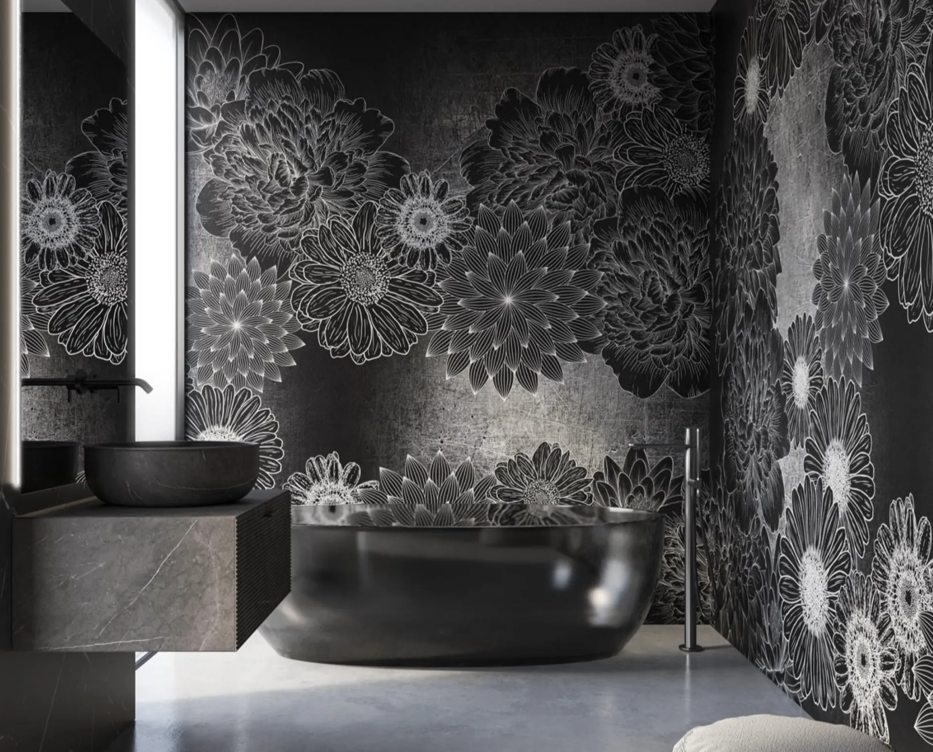 La collezione Alambra di Instabilelab incarna un'innovativa visione del design per superfici verticali, caratterizzata da un distintivo motivo floreale con elementi grafici neri di grande impatto. Questa proposta artistica traduce l'essenza naturale in una forma stilizzata e contemporanea, enfatizzata da un bilanciato contrasto cromatico e una raffinata esecuzione. I dettagli floreali, delineati con precisione attraverso linee pulite e geometrie essenziali, sono presentati in una scala generosa, generando una presenza visiva potente e accattivante. La monocromia, che si esprime nell'interazione tra bianco e nero, conferisce alla composizione un'eleganza sofisticata e un'allure drammatica. Le soluzioni grafiche sono interamente configurabili e compatibili con diverse tipologie di supporto ad alte prestazioni, inclusi New Middle, Cross, Green, Fibratex e Sonora, garantendo versatilità progettuale e adattabilità a molteplici contesti applicativi. La selezione rigorosa dei materiali e l'ingegneria del prodotto assicurano una resistenza prolungata e una resa estetica immutata nel tempo, soddisfacendo i più elevati standard qualitativi e di design.