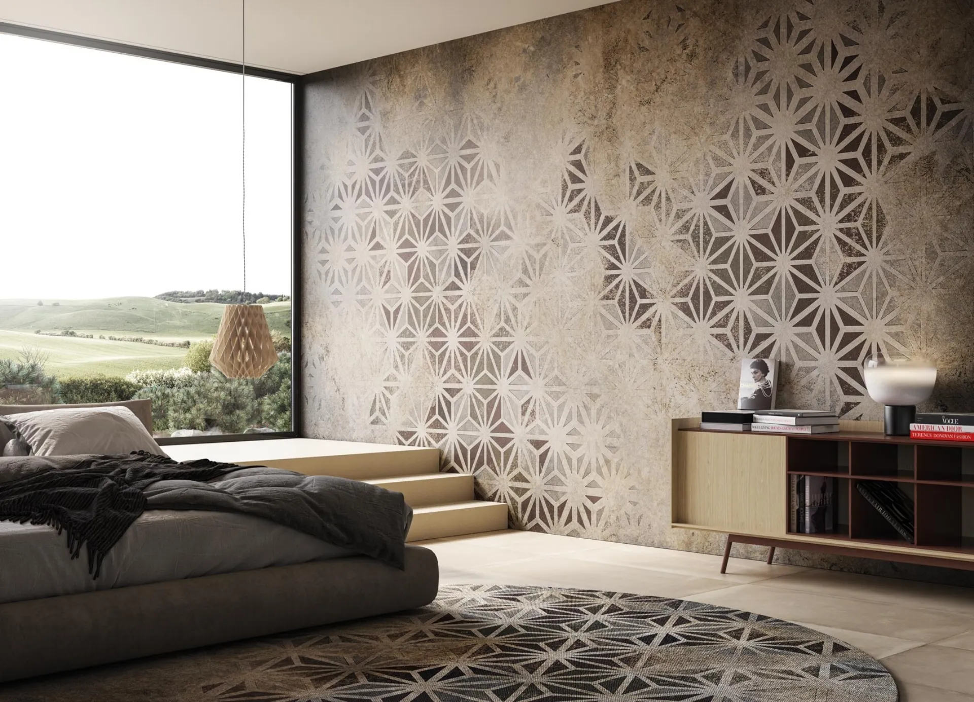La carta da parati Archeo di Instabilelab si distingue per il suo design geometrico all'avanguardia, dove pattern di triangoli si ripetono creando un'esperienza visiva di profondo dinamismo. La flessibilità compositiva dei moduli triangolari offre un'ampia gamma di possibilità estetiche e di personalizzazione, permettendo configurazioni uniche per ogni ambiente. Il meticoloso trattamento dei colori è studiato per conferire alla superficie un inconfondibile effetto antico, aggiungendo un tocco di sofisticata eleganza a qualsiasi spazio. Questa soluzione d'arredo rappresenta un investimento in durabilità e design innovativo, progettata per offrire prestazioni estetiche e funzionali di lunga durata.
