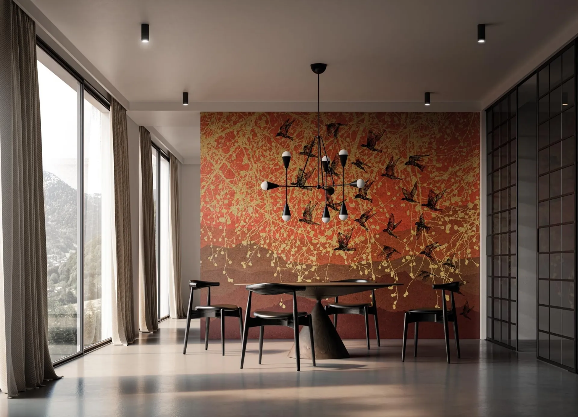 La carta da parati decorativa Red Mountain di Instabilelab, parte della rinomata collezione 24K, si distingue per il suo design suggestivo che evoca paesaggi di dune. Le sue tonalità calde, che spaziano dal rosso carminio al mattone, creano un'atmosfera avvolgente. Elementi come rami dorati e un delicato volo di uccelli neri sono integrati per arricchire la composizione visiva. Questo rivestimento murale è specificamente progettato per ambienti moderni, ideale per conferire un carattere unico a soggiorni o altre stanze. Realizzata con materiali Prestige di alta qualità, disponibili nelle varianti Oro e Oro Rosa, questa carta da parati incorpora una lamina d'oro che interagisce con la luce, generando riflessi iridescenti e un effetto lussuoso. La produzione è modulare e personalizzabile, adattandosi precisamente alle dimensioni desiderate di altezza e larghezza della parete, garantendo un'applicazione su misura e un'integrazione perfetta nell'ambiente. Per maggiori dettagli sulle specifiche tecniche e sulle opzioni di personalizzazione, il nostro team di esperti è a disposizione per fornire informazioni approfondite e supporto tecnico.
