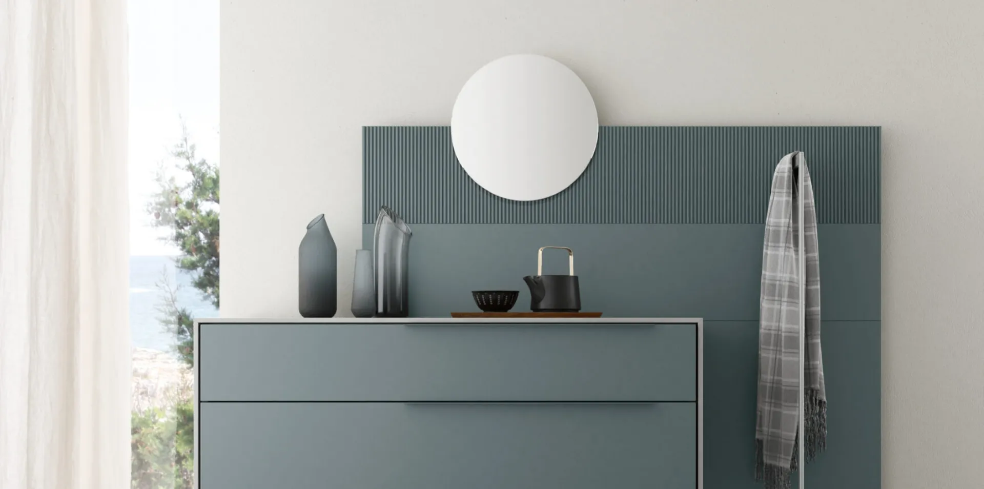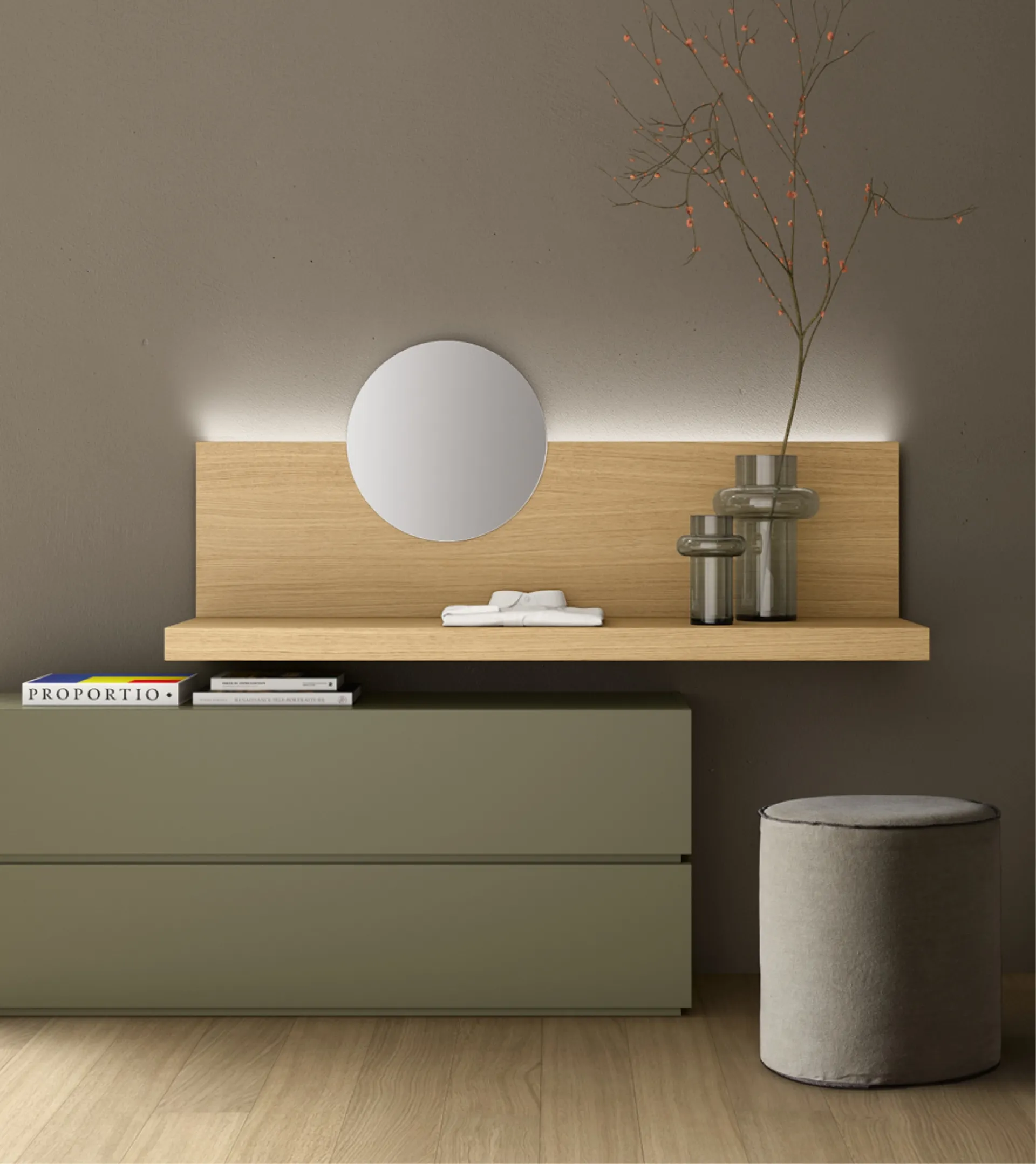 | Materiale: | Rovere impiallacciato (disponibile in 4 finiture), Laccato opaco (es. Grafite), Melaminico effetto marmo (es. Nero Marquinia) |