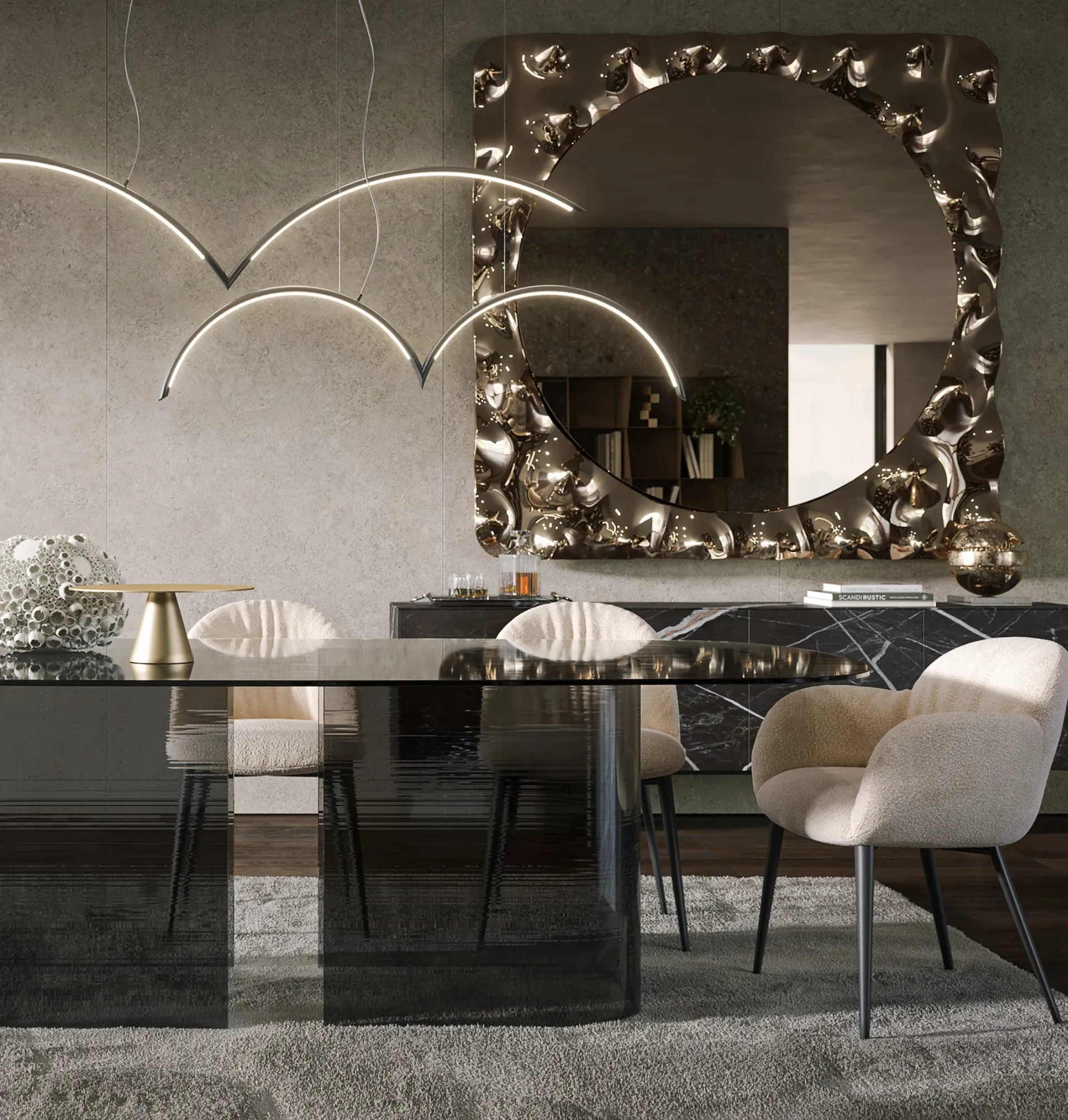 Altamente versatili e plurifunzionali, i Complementi design in vetro svolgono funzioni diverse: ultimano le doti di funzionalità e il valore estetico dell'ambiente. Complementi e specchi completano l'arredo di casa, occupando lo spazio in maniera utile e rendendolo assai funzionale e bello a vedersi. Specchiera Afrodite maxi di Tonin Casa in vetro: darà personalità e charme a un locale arredato con mobili ed elementi accessori dai richiami design. In negozio potrai visionare in prima persona la qualità dei modelli di specchi design in vetro del marchio, proprio come questa proposta in foto.