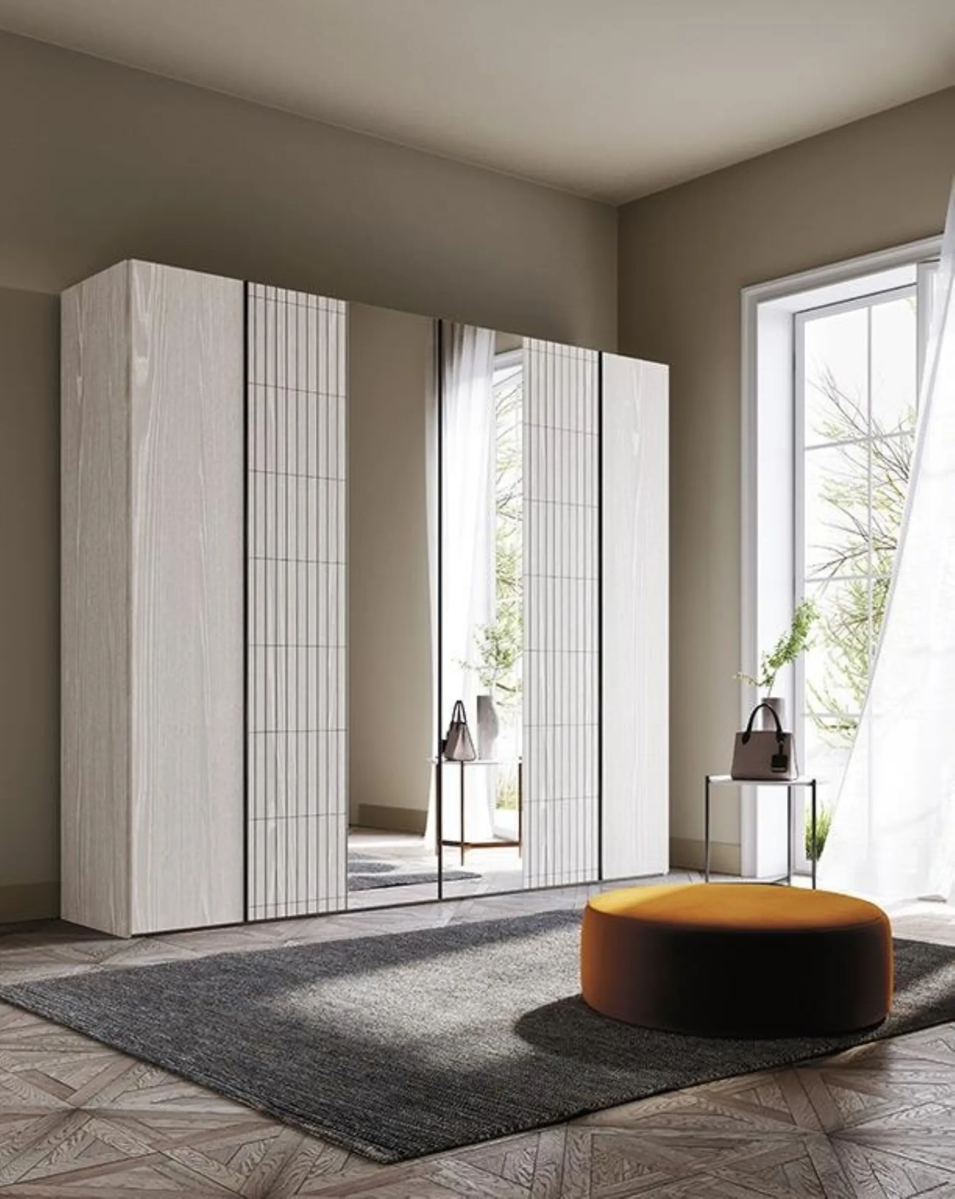 Gli Armadi componibili con ante battenti sono componenti irrinunciabili in camera, per renderla ben arredata, funzionale e completa di tutto. Per allestire al meglio una stanza bella e di grande qualità, opta per le più originali soluzioni dei migliori produttori, letti, armadi e comò di elevata qualità. Contattaci e scopri di più sulla nostra linea di Arredamento Casa: potrai ultimare la zona del riposo grazie a una ricca disponibilità di mobili contenitori design, come l'armadio in legno in foto.
