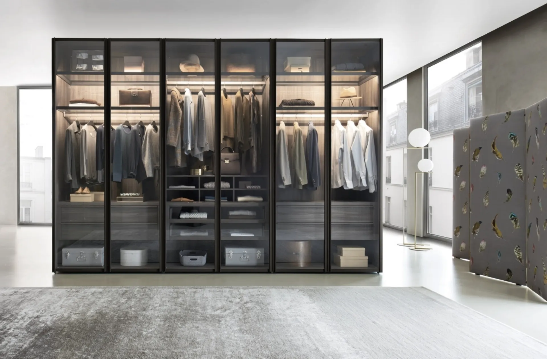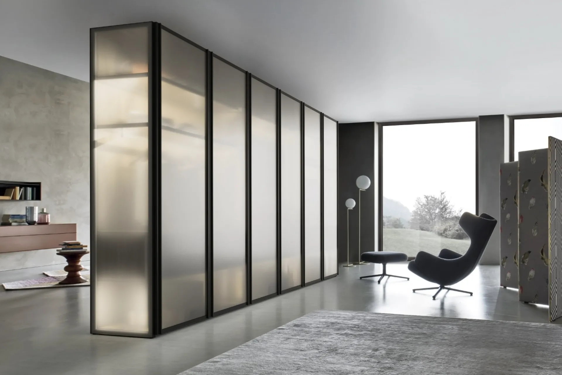 Visitarci vuole dire vedere dal vivo tanti prodotti del noto e rinomato marchio, sempre di alto contenuto estetico. Una diversificata varietà di arredi in vetro come questo guardaroba con ante battenti nell'immagine. Qualità e comfort sono gli ingredienti che, di pari passo con un elevato contenuto estetico, connotano tutti gli Armadi componibili design del marchio Sangiacomo. Armadio Scrigno di Sangiacomo: se desideri arredatori professionisti per preventivi e progetti, realizza con noi la casa che hai sempre sognato. Se vuoi creare una stanza bella e di grande qualità, compila il form o facci visita per ottenere infromazioni, complementi e accessori nell'ambito dell'Arredamento Casa.