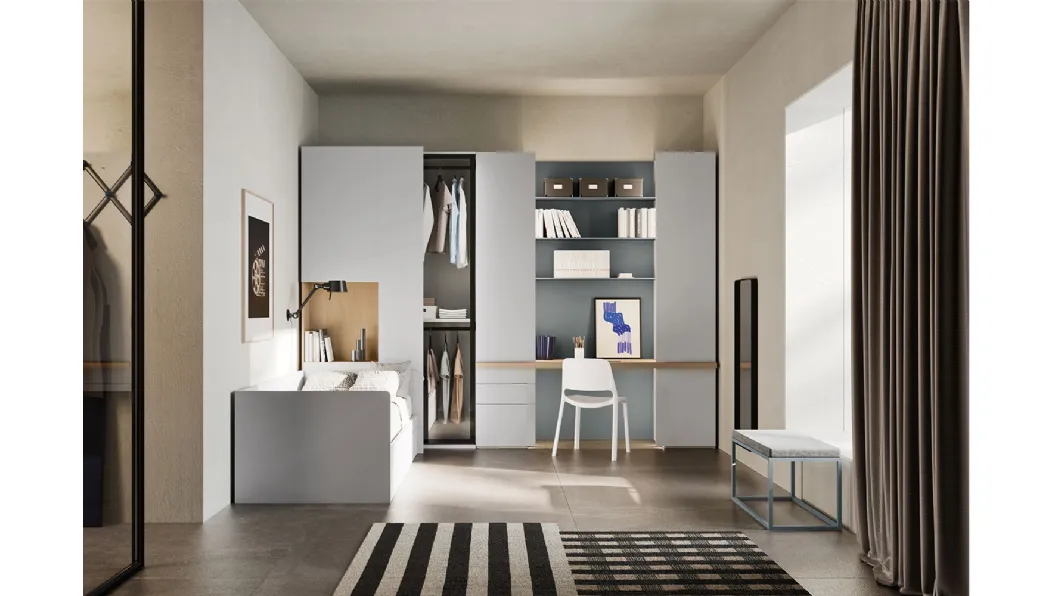 Nel nostro punto vendita ti guidiamo dalla scelta dell'arredamento per la camera alla progettazione del luogo dove i tuoi bimbi cresceranno, divertendosi e sognando. Con la Cameretta compatta salvaspazio Start T09 di Clever in laccato opaco ti assicurerai un perfetto accordo di funzionalità ed ergonomia, ideale per la stanza dei tuoi figli. Le Camerette dei nostri figli sono lo spazio in cui passeranno i loro primi anni divertendosi e sognando, dunque è essenziale che lo spazio sia agevole. I nostri bambini trascorrono ore della giornata nelle loro camere da letto: rendile adatte per dedicarsi alla scuola, divertirsi e dormire tutti i giorni. Proponiamo nel nostro showroom molteplici Camerette componibili moderne per ragazzi del marchio, ideali per seguirli durante il loro sviluppo.
