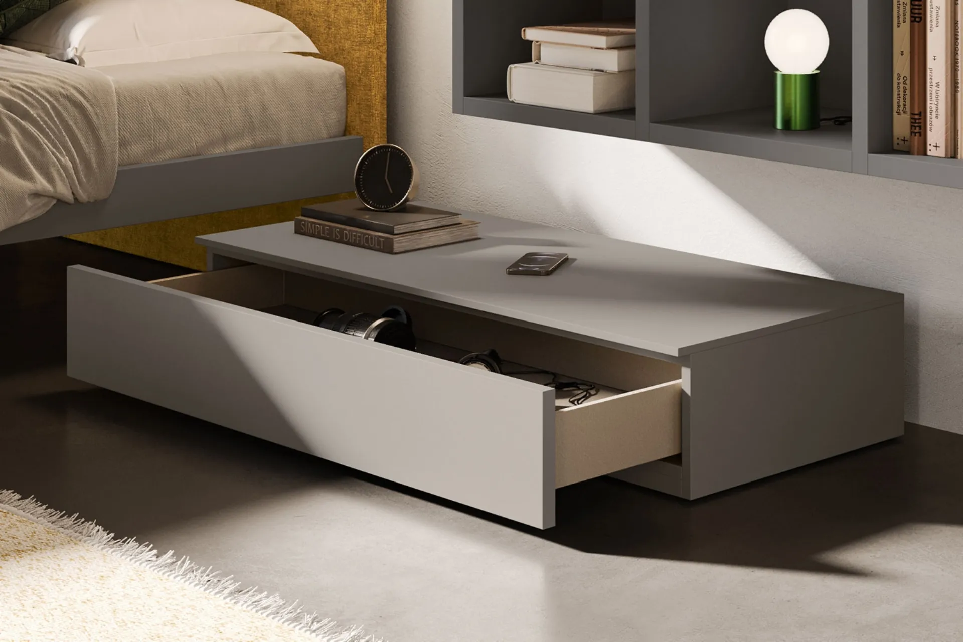 Comodino Box terra basso di Clever: contattaci e ottieni informazioni sulle nostre composizioni e arreda la camera come l'hai sempre immaginata. Valorizza i tuoi spazi scegliendo composizioni di arredi coordinati oppure crea esteticamente gradevoli abbinamenti di stile e tonalità per merito del catalogo di mobili e oggetti accessori per la zona notte che proponiamo, come il modello in laccato opaco mostrato in foto, anche realizzabili su misura per te. La zona notte contiene anche i Comodini: arredi contenitivi strategici che offrono l'opportunità di ordinare piccole cose e potere ususfruire di piani di appoggio per vari utilizzi. Con i nostri gruppi notte moderni della firma Clever, specialista dell’Arredamento Casa per la zona notte, potrai ricreare la camera che hai sempre voluto.