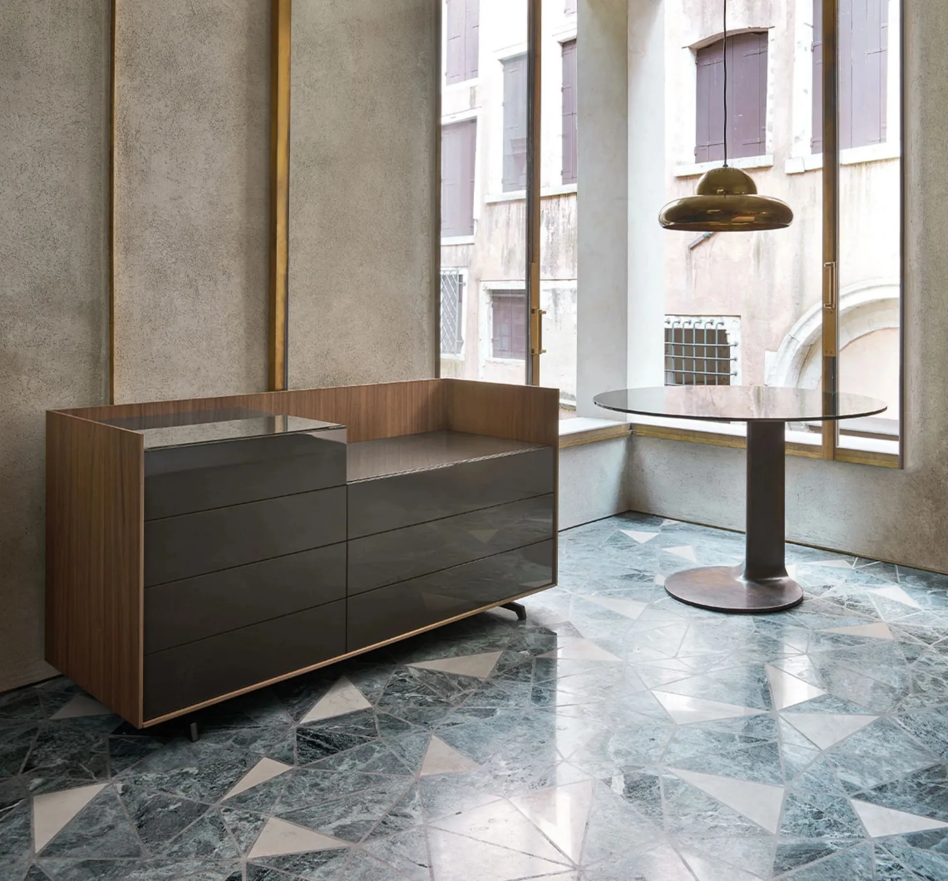 Il comò Cabaret Glass di Sangiacomo si distingue come un'espressione di design contemporaneo, dove funzionalità e raffinatezza si fondono armoniosamente. Ogni dettaglio riflette la meticolosa cura del Made in Italy, mirando a ottimizzare l'ambiente abitativo con un tocco di personalità. La versione 'Glass' esalta la sua estetica attraverso l'integrazione di elementi in vetro, conferendo leggerezza visiva e luminosità. La sua versatilità è ulteriormente ampliata dalla disponibilità in finiture di pregio, quali noce canaletto, laccati opachi e superfici in ceramica o vetro, facilitando l'inserimento in diversi contesti d'arredo. La scrupolosa selezione dei materiali e le avanzate tecniche produttive garantiscono un prodotto di elevata qualità e resistenza, un investimento duraturo nel tempo.