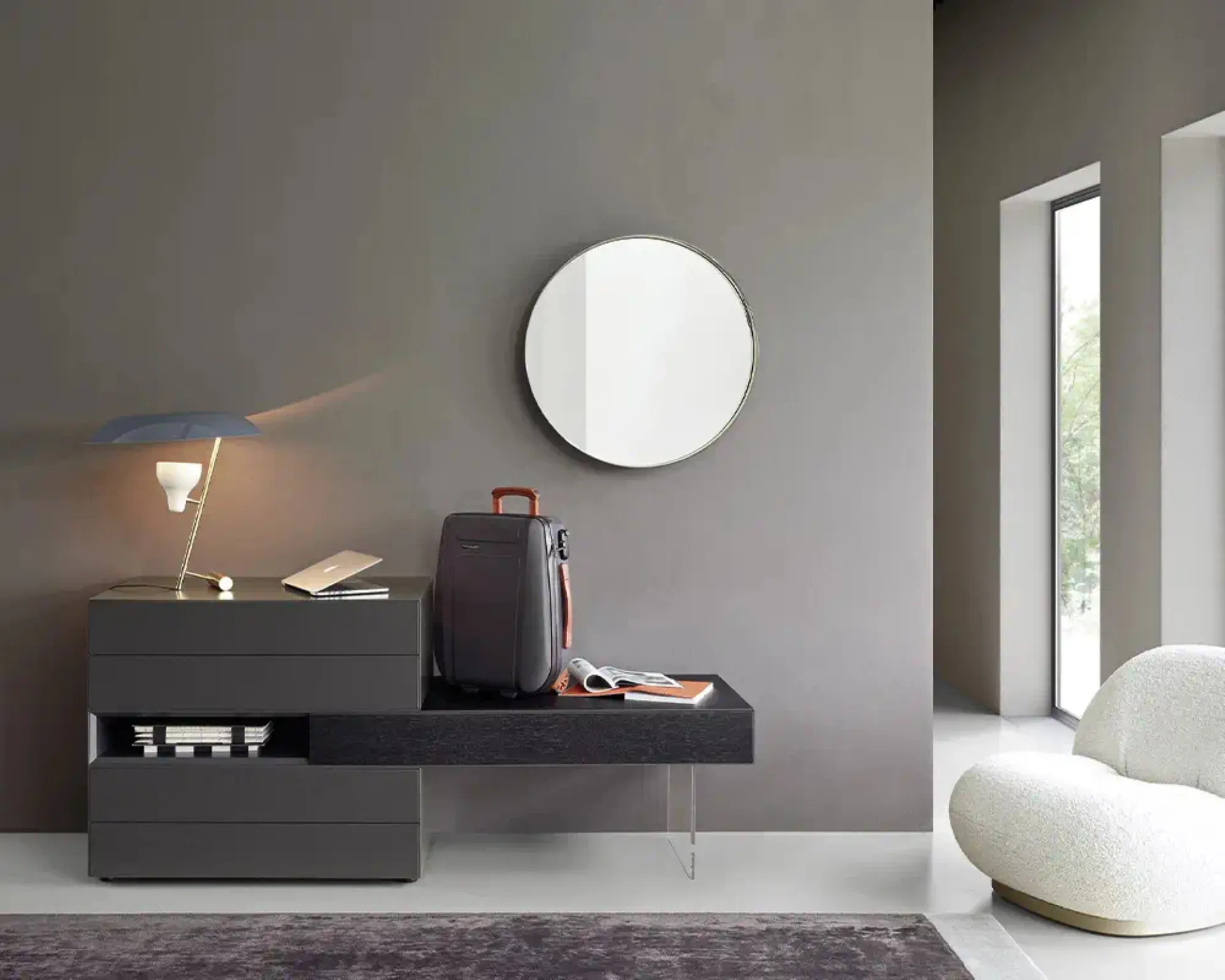 La cassettiera Domino Componibile di Sangiacomo è l'arredo perfetto per chi cerca flessibilità e stile nella zona notte, e la puoi trovare disponibile per la visione e l'acquisto presso il nostro showroom Arredamenti Cenedese Srl a San Bartolomeo di Breda. Questa linea esclusiva, parte della rinomata collezione 'Contenitori notte', offre un'ampia gamma di soluzioni modulari per comò, cassettiere e comodini, consentendoti di progettare composizioni uniche e personalizzate che si adattano perfettamente al tuo gusto e alle tue esigenze. La tradizione artigianale si fonde con l'innovazione del design, un connubio che potrai toccare con mano nel nostro punto vendita. I contenitori notte Sangiacomo, con la serie Domino in evidenza, sono celebri per la loro intrinseca versatilità e la raffinata estetica, grazie all'uso sapiente di materiali pregiati come il legno e il vetro. La natura modulare delle singole unità offre la libertà di realizzare configurazioni sia orizzontali che verticali, assicurando un risultato sempre originale e distintivo per la tua camera da letto di design. Ti aspettiamo per mostrarti tutte le possibilità.