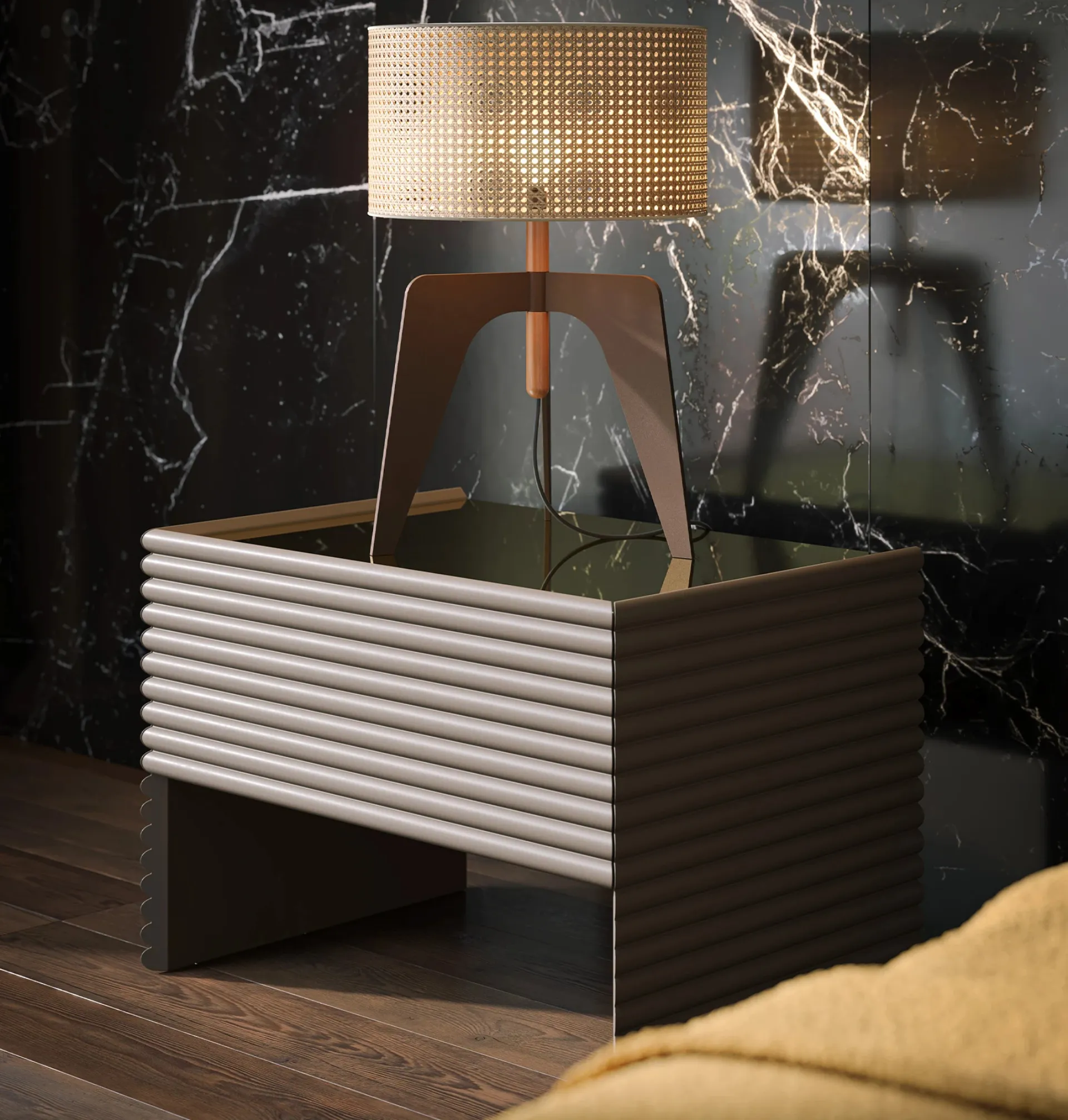 Scopri l'esclusivo comodino Patsy, un pezzo d'arredo che incanta con il suo design raffinato, disponibile per essere ammirato e toccato con mano presso il nostro showroom Arredamenti Cenedese Srl a San Bartolomeo di Breda. Questo comodino, parte della prestigiosa collezione notte Tonin Casa, si distingue per le sue fresature orizzontali sulla superficie in legno laccato, che creano un affascinante gioco di movimento e profondità, estendendosi con eleganza su fianchi e ante. Il top a specchio, un dettaglio di pregio, aggiunge un tocco di luminosità, valorizzando ulteriormente l'ambiente circostante. Presso la nostra sede, potrai esplorare tutte le sue caratteristiche, beneficiando della consulenza dei nostri esperti. Siamo il tuo partner di fiducia per l'arredamento, fornendo soluzioni che uniscono estetica e funzionalità in tutta la provincia di Treviso.