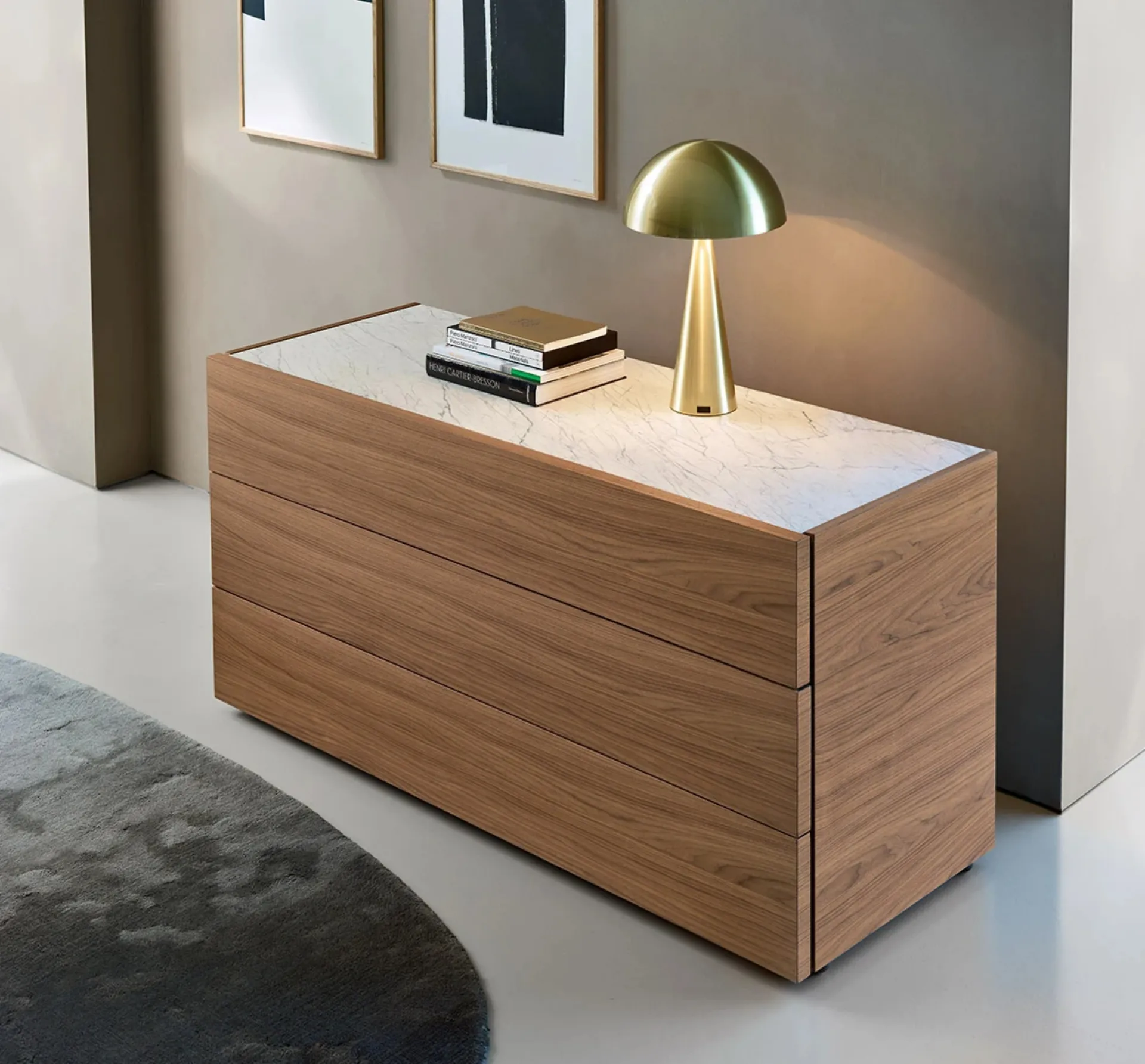 I Comodini sono mobili in grado di completare la camera da letto fornendo una superficie di appoggio sicuramente utile e eclettico. Ti domandi in che modo abbinare letti, armadi e comodini? Con il modello di Sangiacomo visibile in foto avrai un mobile appropriato per un luogo dai richiami design.
