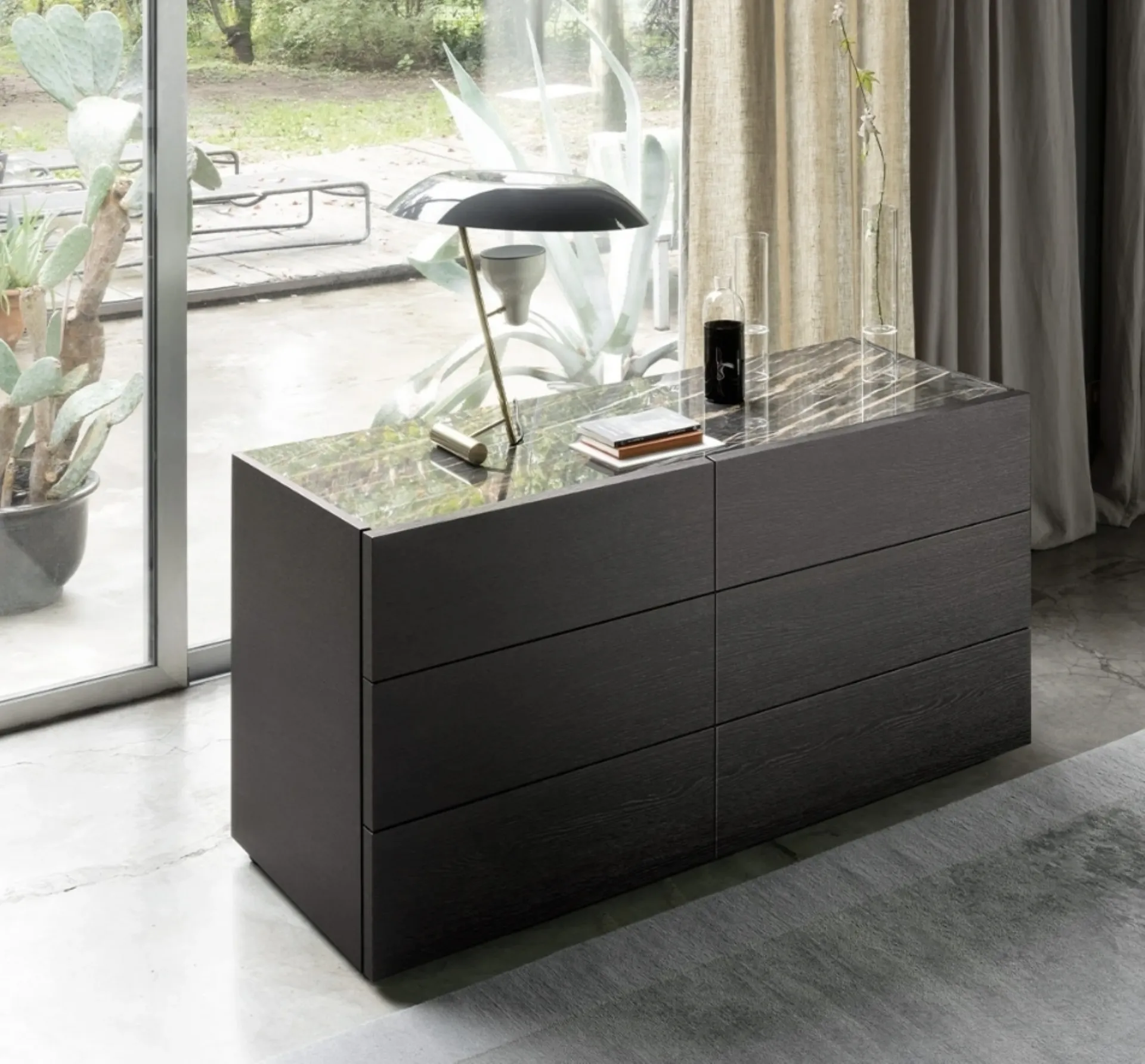 Il comò Status di Sangiacomo è un pezzo d'arredo raffinato e altamente funzionale, perfetto per arricchire la tua zona notte. È ora disponibile per la visione e l'acquisto diretto presso il nostro showroom Arredamenti Cenedese Srl a San Bartolomeo di Breda. Questo modello si distingue per il suo design moderno e le linee pulite, con frontali di notevole spessore che integrano una pratica presa laterale, facilitando l'apertura dei cassetti. La personalizzazione è un punto di forza: il top può essere scelto in ceramica, un materiale eccezionalmente resistente a graffi e usura, oppure in una varietà di finiture che spaziano dal Rovere tinto al Rovere Termotrattato e Noce Canaletto, senza dimenticare le eleganti opzioni laccate. I fianchi leggermente rialzati completano l'estetica, incorniciando armoniosamente il piano. La nostra pluriennale esperienza è al servizio dei clienti che arredano a Treviso e nelle aree limitrofe, garantendo un'ampia scelta e supporto per ogni esigenza d'arredo.