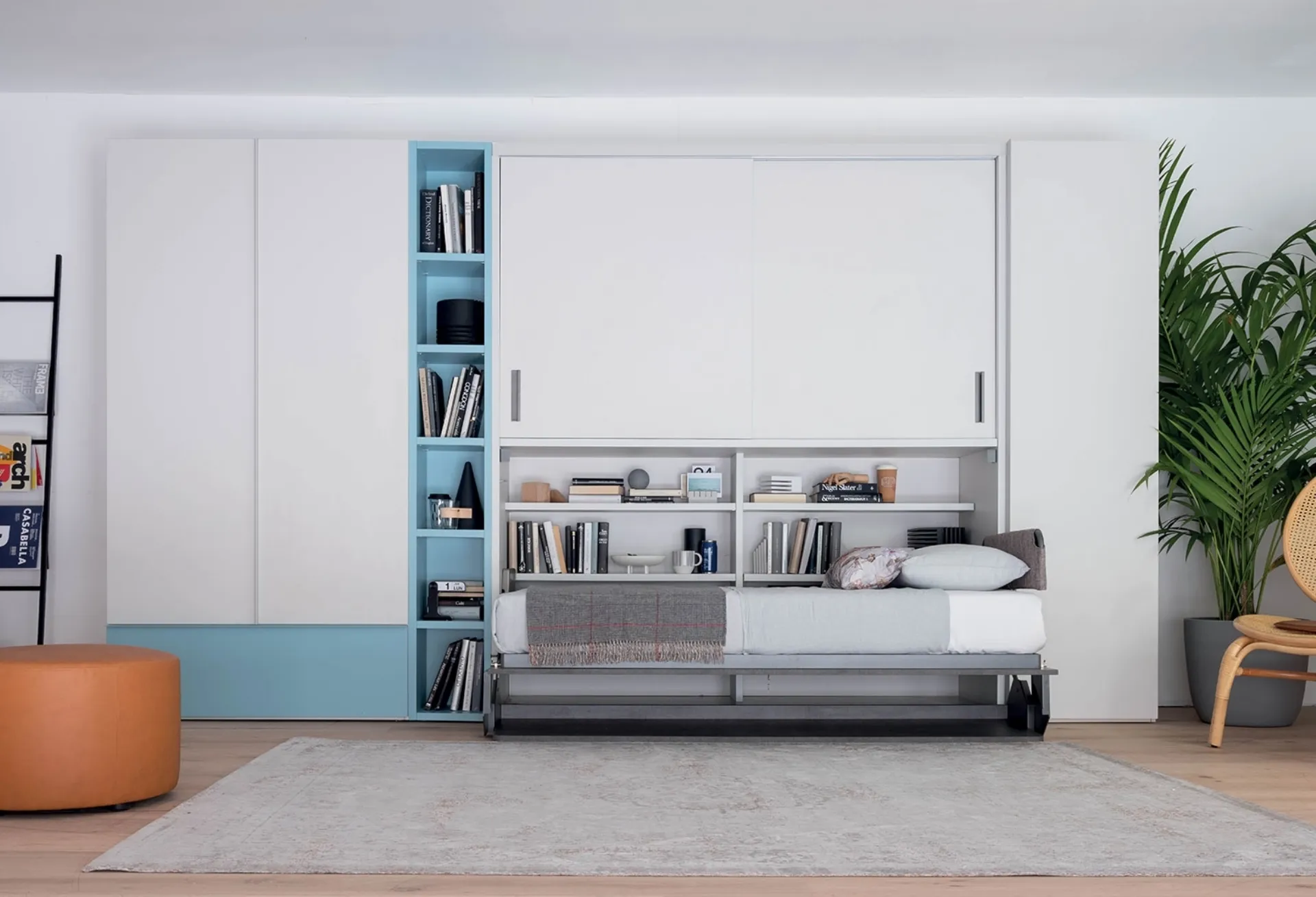 Scopri il versatile Mobile letto singolo con armadio Hiro Armadio di Clever, una soluzione salvaspazio ideale per ogni ambiente. Disponibile presso il nostro showroom Arredamenti Cenedese Srl a San Bartolomeo di Breda, questo mobile integra un letto a scomparsa, un armadio capiente e una pratica scrivania ribaltabile. Questo sistema innovativo permette di trasformare con facilità la zona giorno in zona notte, grazie a un meccanismo brevettato che garantisce praticità e sicurezza. Non dovrai più rimuovere gli oggetti dalla scrivania, che mantiene la sua posizione durante l'apertura del letto. L'armadio superiore con ante scorrevoli offre ulteriore spazio contenitivo. Vieni a trovarci nel nostro punto vendita di San Bartolomeo di Breda per esplorare le infinite possibilità di personalizzazione e toccare con mano la qualità del Mobile letto singolo con armadio Hiro Armadio.