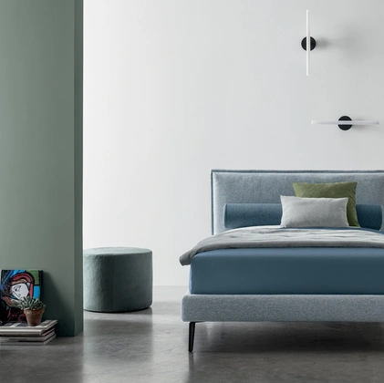 Il letto singolo Aster in tessuto nella fotografia, tra i modelli imbottiti moderni di Bside, è pensato per garantire il riposo migliore.