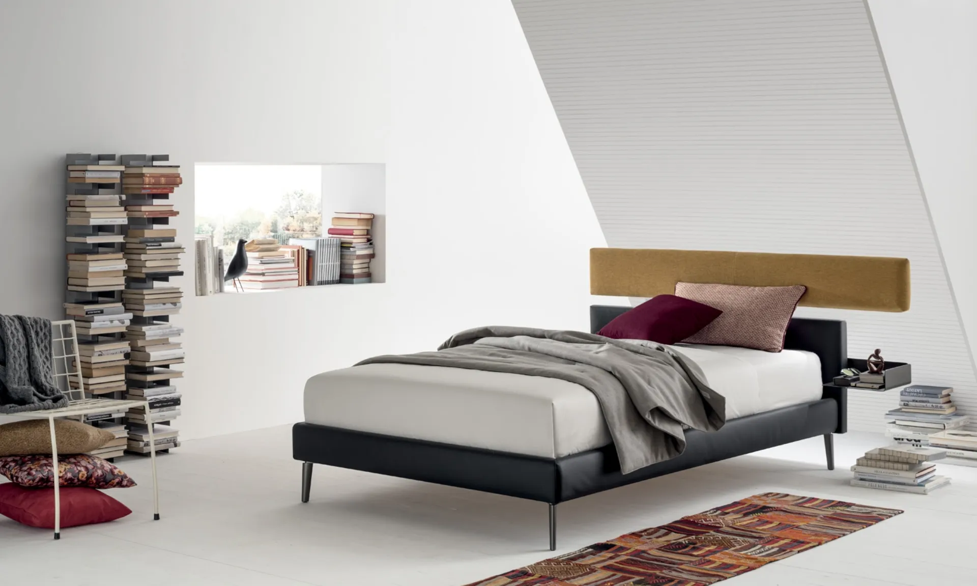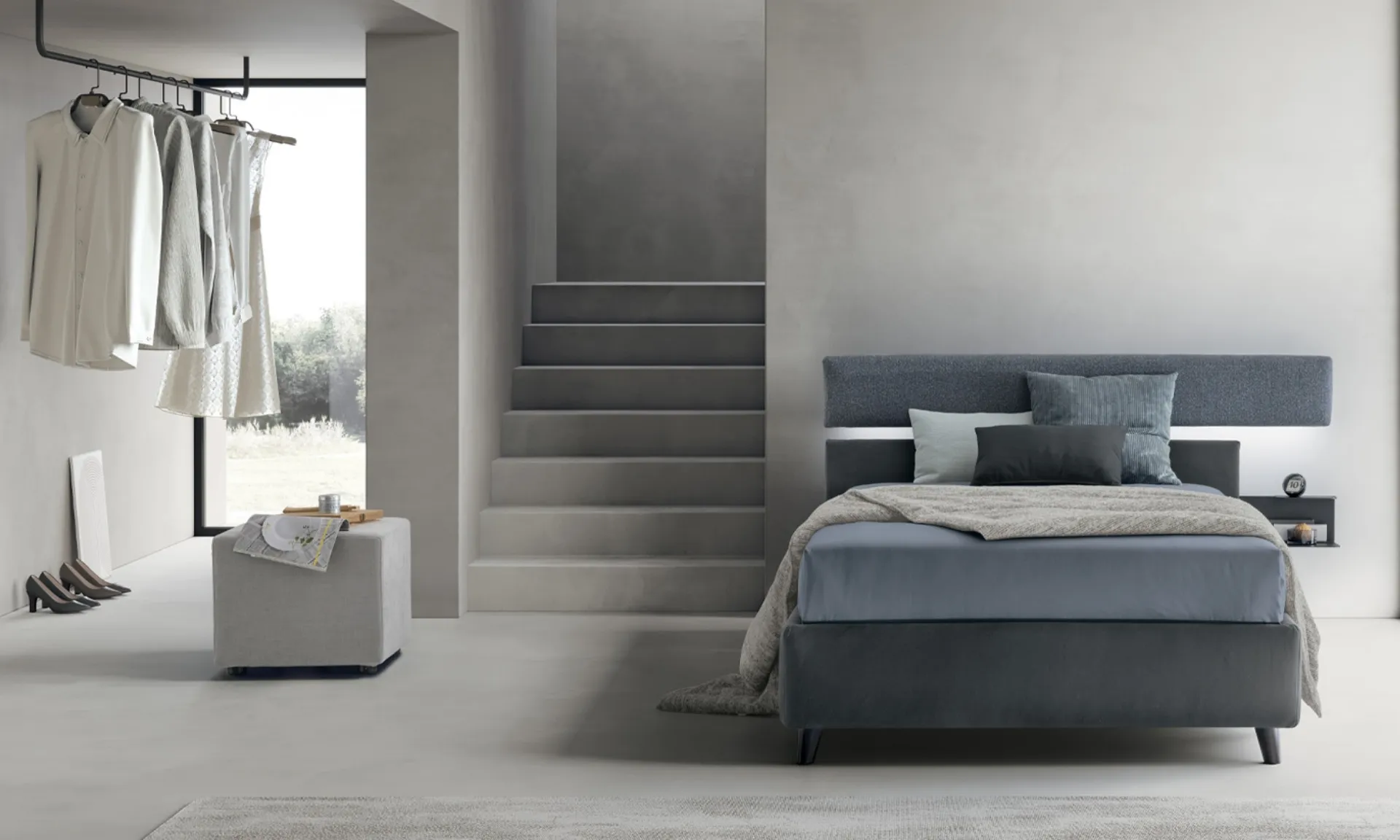 Il letto Denver di V&Nice, un'espressione di design contemporaneo, si distingue per la sua concezione multifunzionale. La testata, elemento focale, è dotata di un pannello imbottito esteso, che offre ampie possibilità di personalizzazione cromatica e materica, includendo opzioni di tinte unite, gradazioni tonali o combinazioni a contrasto. Un tavolino d'appoggio, elegantemente integrato nella struttura della testata, è regolabile su diverse altezze, fornendo una soluzione ottimizzata per la gestione dello spazio. L'illuminazione a LED, posizionata strategicamente nella parte inferiore del pannello, genera un'atmosfera luminosa soffusa, ideale per la lettura e il comfort visivo. Il sistema è disponibile con varianti di giroletto (H14 cm o H25 cm) e può integrare un vano contenitore per ottimizzare lo stoccaggio. Il progetto è opera dello studio Rossi&Co. Un investimento in design e durabilità, progettato per soddisfare le esigenze a lungo termine dell'utilizzatore.
