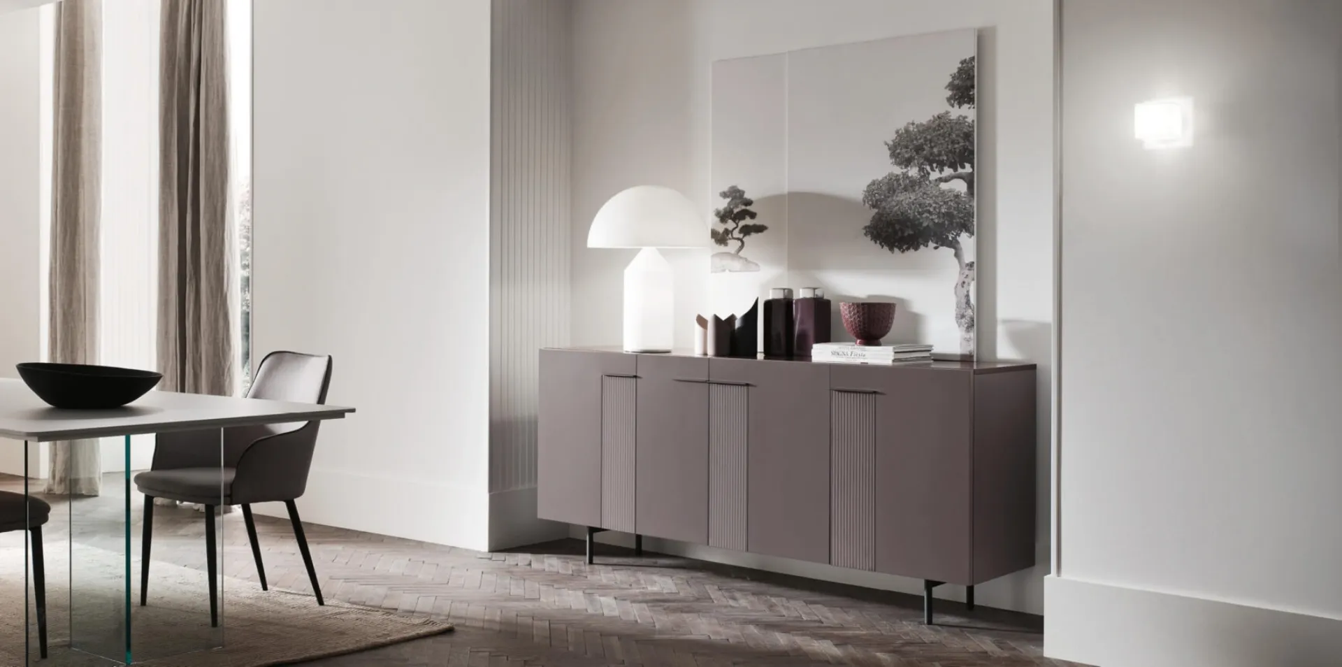 Presso il nostro showroom, puoi visionare un'ampia materioteca con campioni di materiali, finiture e rivestimenti. Il nostro team ti guiderà nella scelta migliore per la tua madia Frida 02.