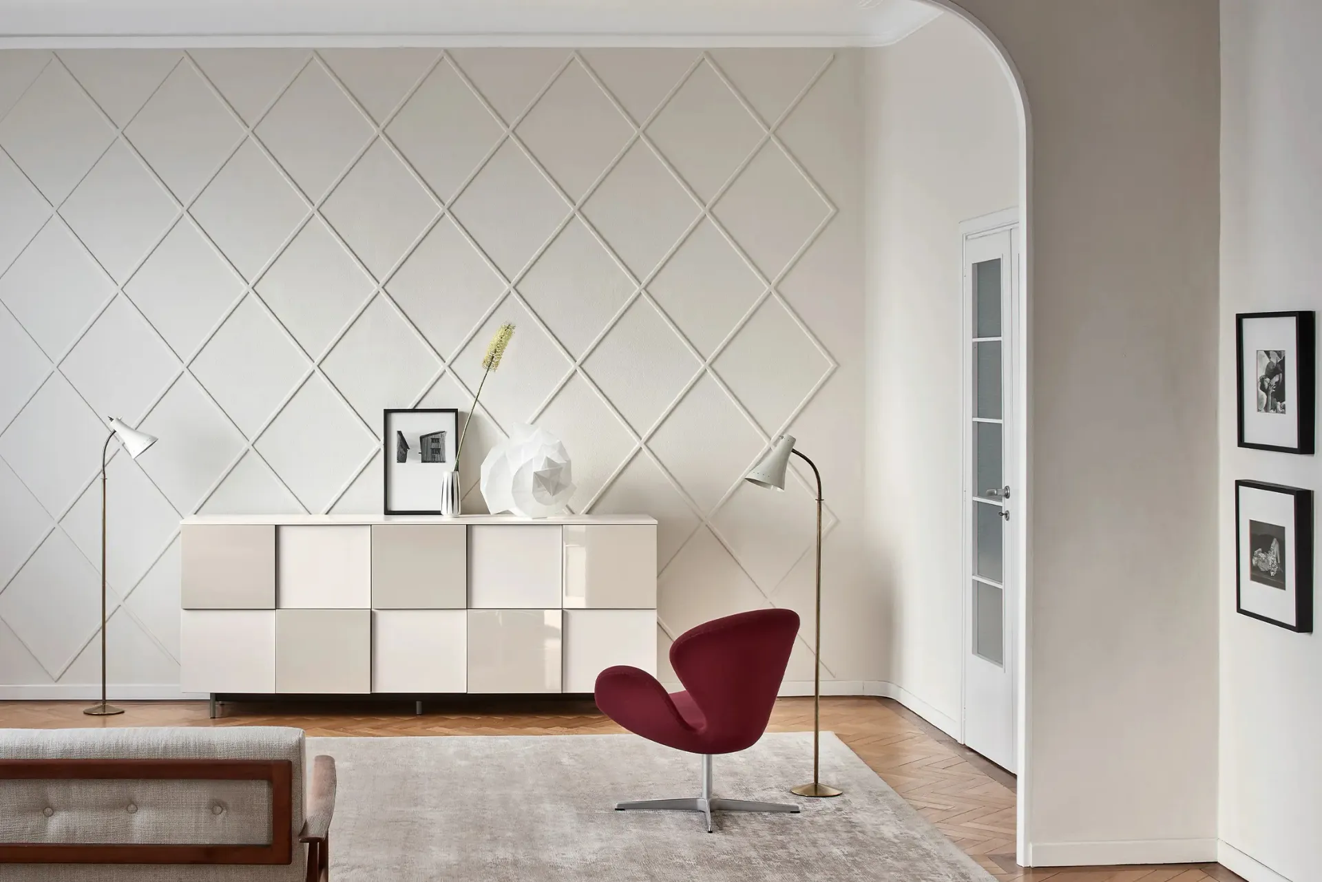 La madia Incontro di Sangiacomo reinterpreta l'arredo tradizionale con una visione contemporanea. Presenta strutture con frontali da 20 mm o 35 mm, offrendo vaste possibilità di personalizzazione tramite finiture e colori, ideali per effetti cromatici armonici o a contrasto. Le soluzioni di apertura includono cassetti, ante battenti o a ribalta, garantendo flessibilità stilistica e compositiva. Il sistema modulare permette di creare configurazioni diverse, come combinazioni di laccato opaco Brown con ante in Rovere nodato tinto Caramello, o eleganti versioni sospese su supporti in metacrilato. La collezione è studiata per generare simmetrie dinamiche e giochi di superficie, con opzioni installabili a parete o a terra. Esplora le molteplici configurazioni e le finiture di pregio per un'integrazione perfetta nel tuo ambiente.