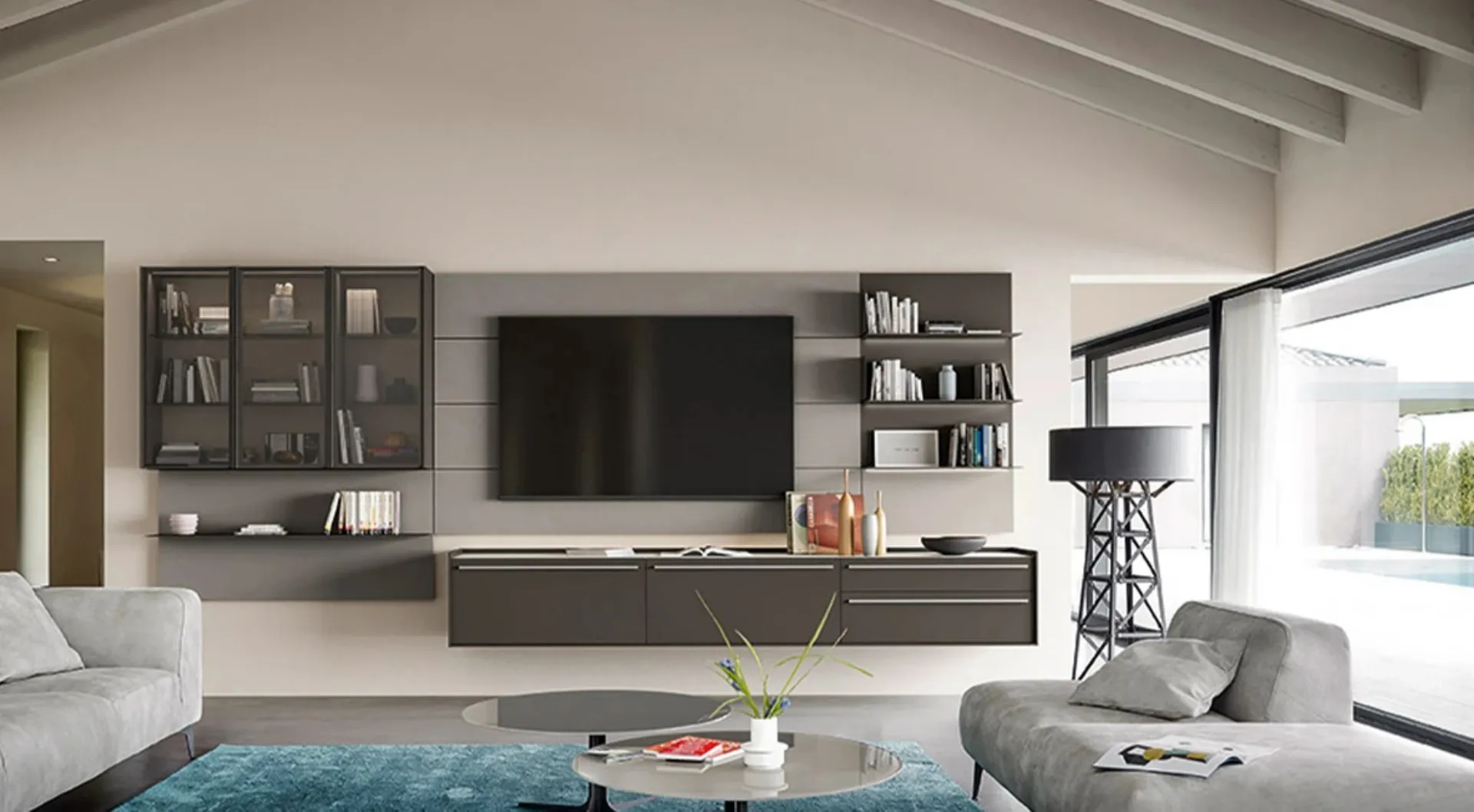 Un po’ librerie, un po’ contenitori ed espositori: le Soggiorni sono ideali per organizzare uno spazio pratico e operativo. La Parete Attrezzata Cabaret One 02 di Sangiacomo in foto, con finitura in laccato opaco, risolve le più personali problematiche abitative di spazio e stile senza rinunciare alla ricerca stilistica. Se cerchi mobili salvaspazio e realizzabili su misura, contattaci e ottieni informazioni sull'Arredamento Casa delle migliori marche. Anche in un living non generoso, questo tipo di arredo riesce a ottimizzare gli spazi usufruendo al meglio di ogni angolo e garantendo l'alta componibilità tipica delle soluzioni moderne.