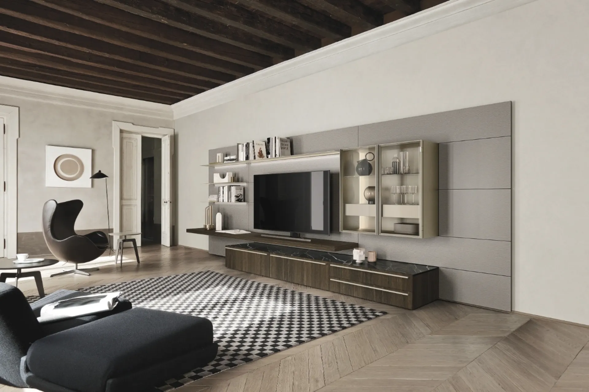 | Materiale: | Noce Canaletto (impiallacciato), Laccato opaco (es. Brown, Terranova, Magnolia, Palladio), Materico (es. Sketch Roccia), Vetro fumé trasparente, Rovere (es. Avana, Termotrattato), Ceramica (es. finitura Calacatta Black), Metallo |