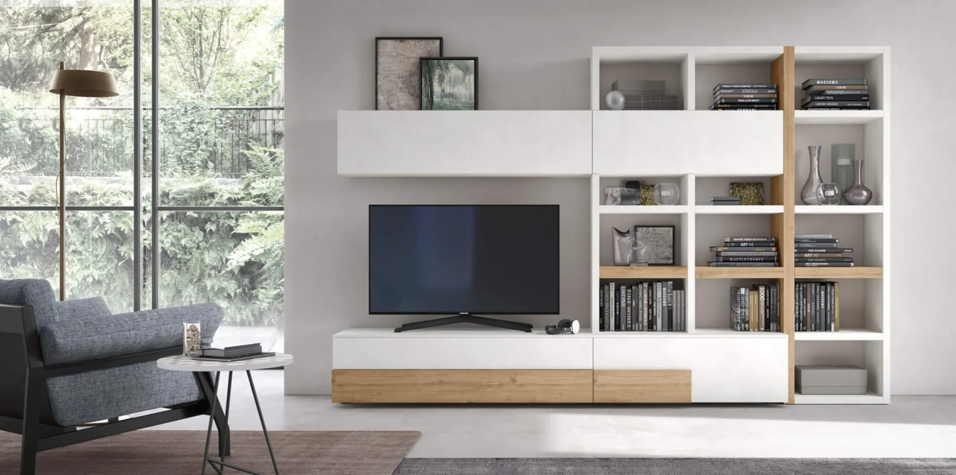 Per informazioni e preventivi sulla Parete Attrezzata Seta Sistema Spalla Comp SA2215 di Maronese nell'immagine contattaci! Il modello proposto è realizzato in melaminico, ma grazie ad un'infinità di texture, cromie e forme, potrà adattarsi a stili di ogni genere. Attraverso un gioco dinamico di accostamenti fra elementi a giorno o vani chiusi, le Soggiorni moderne arredano il living sfruttando bene ogni spazio. Questa parete attrezzata è una delle soluzioni della firma e ti permetterà di progettare il soggiorno secondo le più personali esigenze abitative.