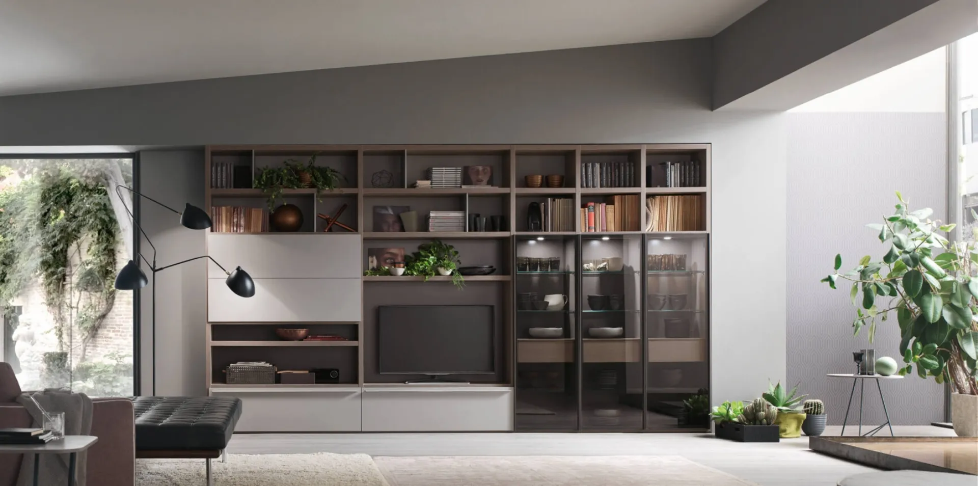 Il Sistema Spalla Comp SA2217 di Maronese ACF si distingue come una parete attrezzata dal design ricercato, caratterizzata da eleganti ante 'Frame'. La sua struttura interna è sapientemente configurata con cassetti dalle molteplici finiture e ripiani in vetro che beneficiano di un'illuminazione integrata nel top, valorizzando ogni dettaglio. Questo sistema modulare incarna la perfetta sinergia tra design innovativo e la selezione meticolosa di materiali d'eccellenza, garantendo durabilità e funzionalità avanzate.