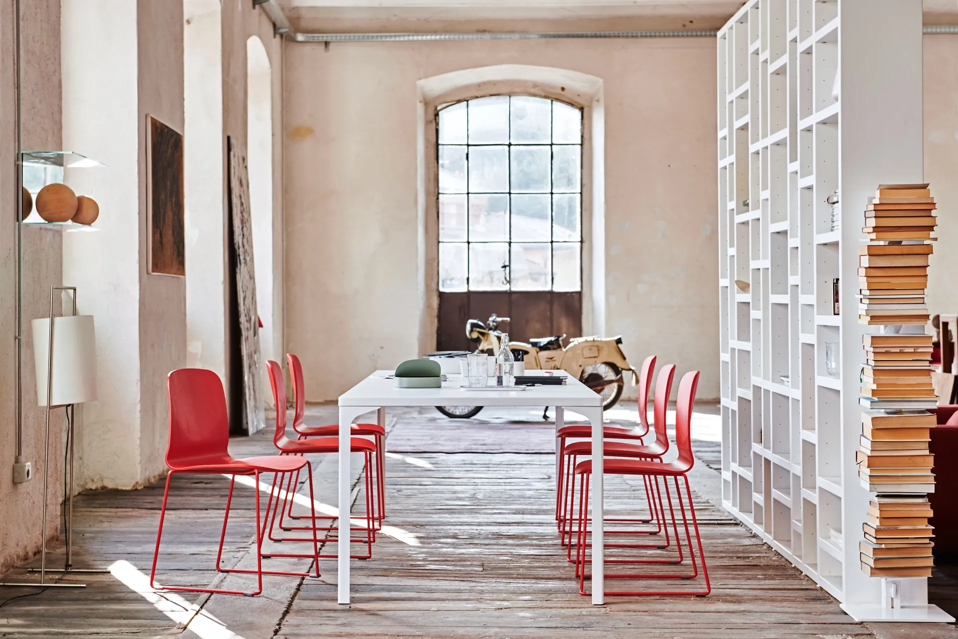 | Materiale: | Struttura in legno di frassino, seduta in legno impiallacciato, inserto in metallo verniciato. |
