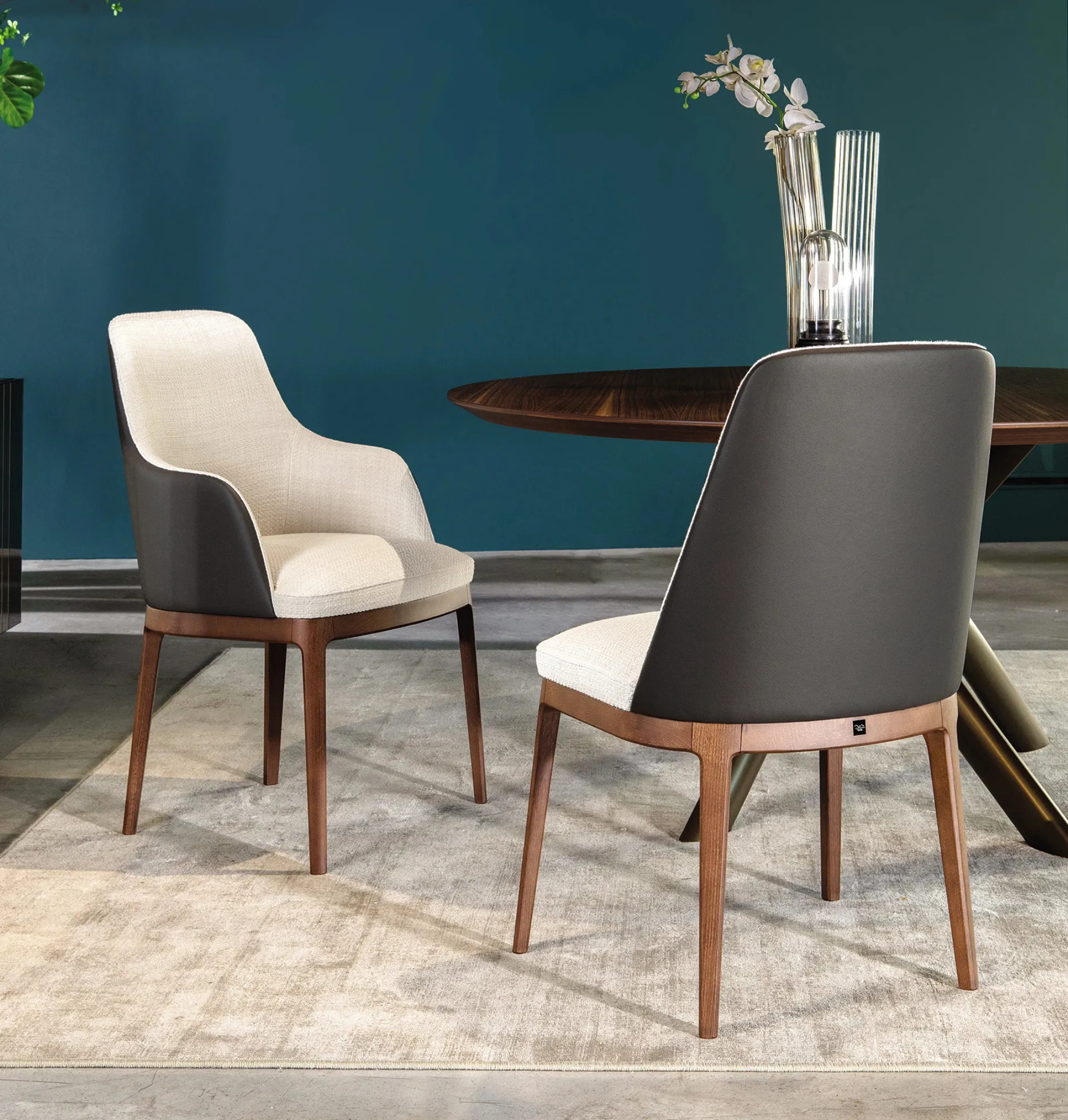 Scopri la sedia Cleo di Tonin Casa, un elemento d'arredo che coniuga design raffinato e comfort duraturo, ideale per valorizzare ogni ambiente. Offriamo un servizio di consulenza personalizzata, consegna e montaggio professionale, esteso a comuni come Treviso, Oderzo e Roncade, per garantirti un'esperienza d'acquisto senza pensieri. La sua solida struttura, disponibile in pregiato Noce Canaletto, Rovere Scuro o Frassino nero, si abbina a una vasta gamma di rivestimenti di alta qualità, tra cui Tessuto Flora, Velluto Vega, Ecopelle e diverse tipologie di Pelle. La versione Élite aggiunge un tocco di esclusività con la sua distintiva trapuntatura. Il nostro impegno si estende anche all'assistenza post-vendita, assicurando supporto e garanzia sulla qualità del prodotto.