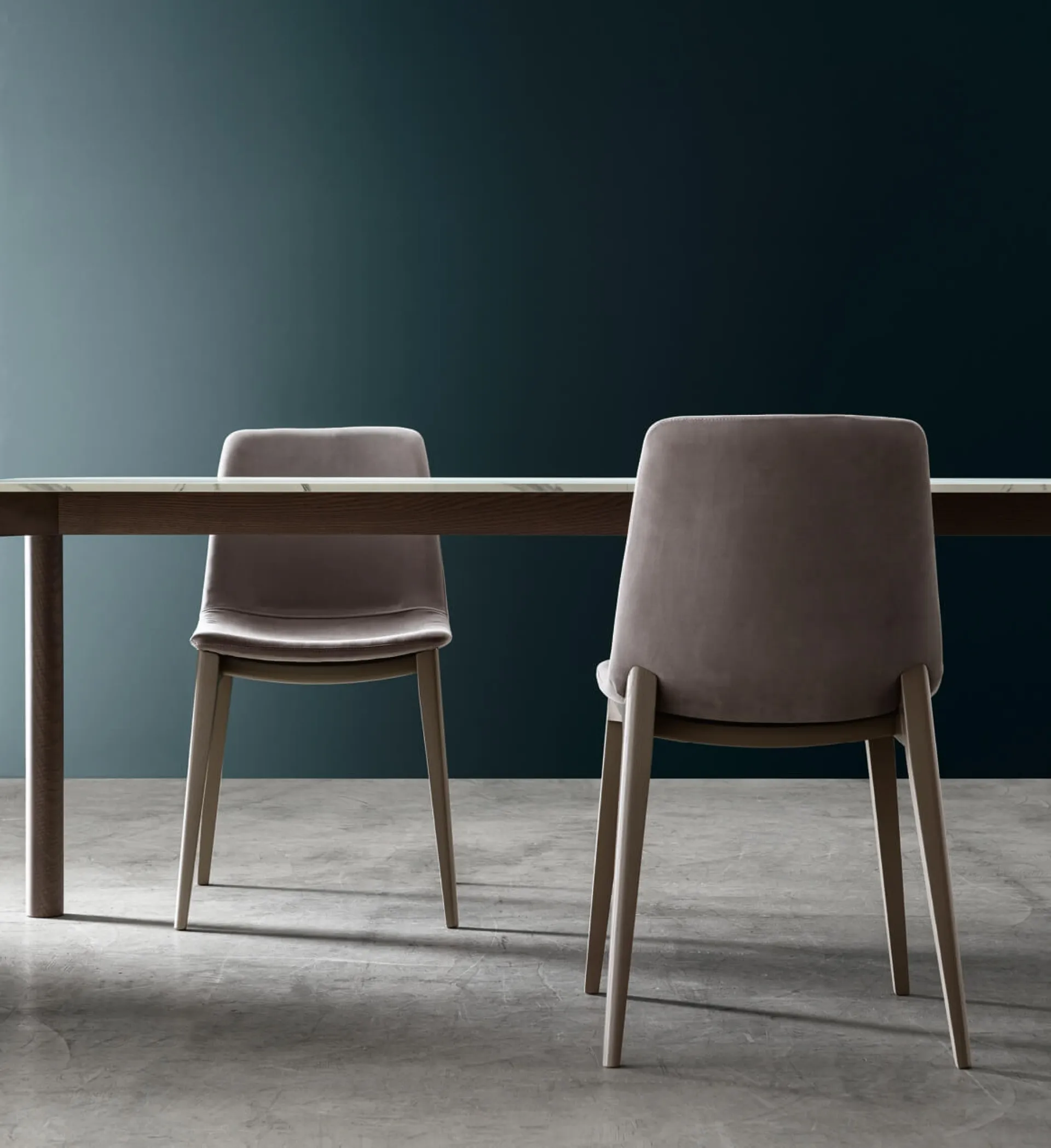 La sedia Vanity può essere realizzata con diverse opzioni per struttura e seduta, come legno, metallo, tessuto o ecopelle. Puoi visionare i campioni di materiali e finiture nella nostra materioteca per il tuo progetto di arredo.