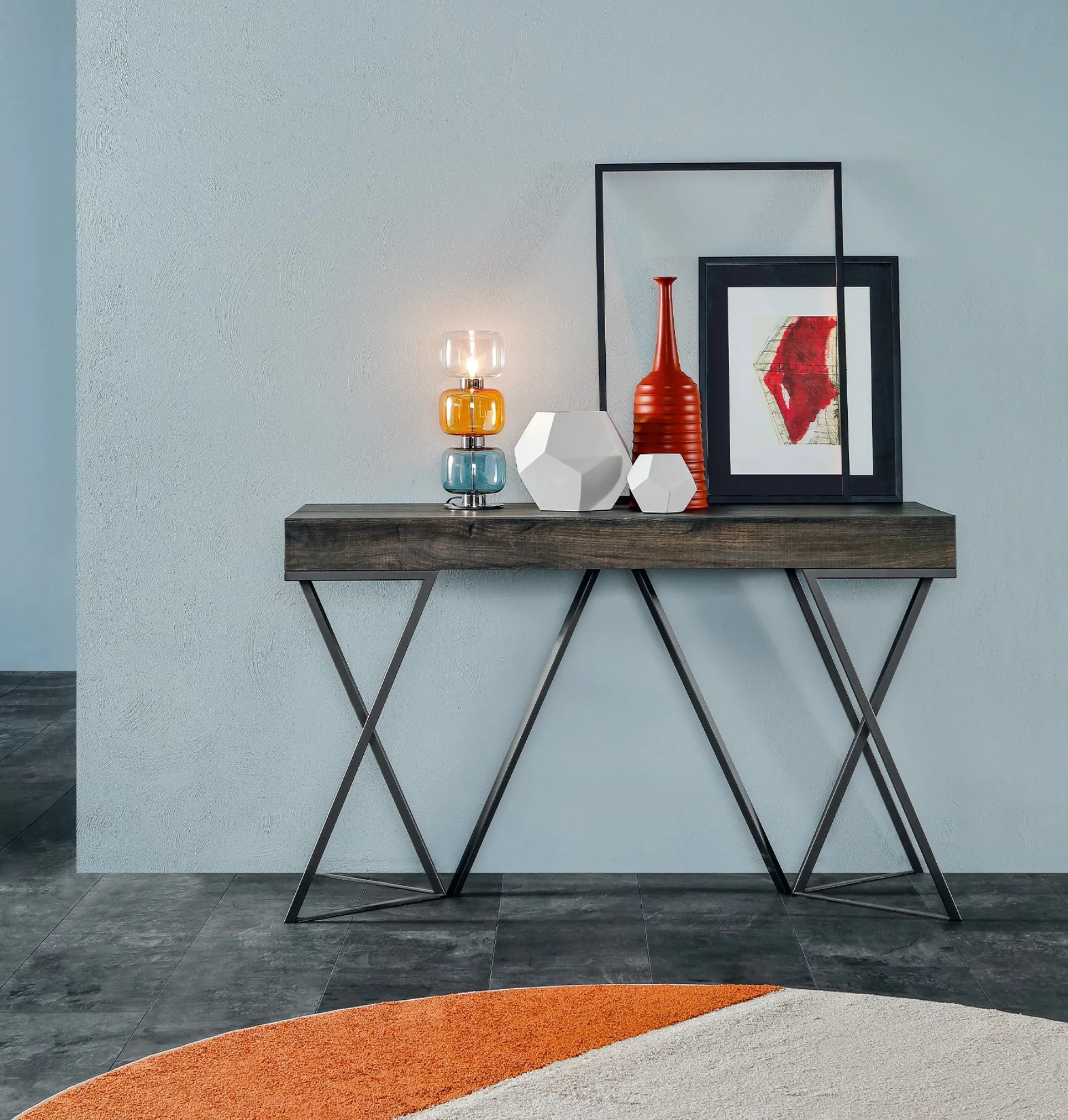 La Consolle Beverly di Tonin Casa incarna un'estetica raffinata e una funzionalità avanzata. La sua struttura si fonda su un design geometrico innovativo, con una base caratterizzata da un distintivo intreccio di fili metallici che ne esalta la leggerezza visiva. Il piano, realizzato in pregiato legno di noce Canaletto o rovere, offre opzioni di personalizzazione estetica. Grazie a un meccanismo di allungamento su binario in alluminio, la consolle si adatta con versatilità a molteplici configurazioni spaziali, garantendo un'ottimizzazione degli ambienti. Questo prodotto, concepito per chi valuta l'eccellenza in termini di stile e praticità, assicura prestazioni e adattabilità superiori, rappresentando una scelta ingegneristicamente valida per ogni contesto d'arredo.