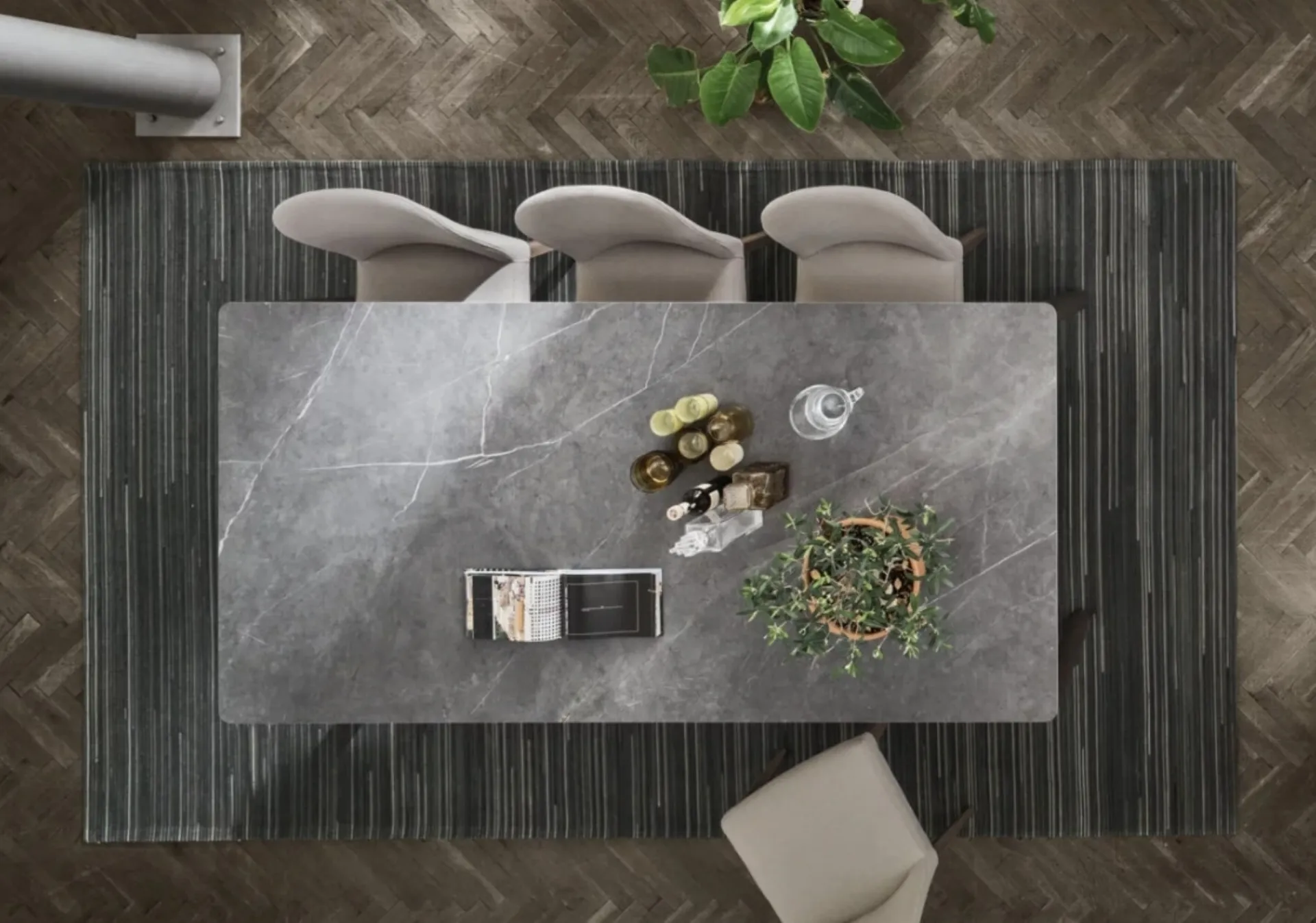 Tavolo in gres Radius di Maronese: realizzato in materiali di prima scelta è connotato dalle linee decise del top e da un basamento ricercato ed elegante. Se sei alla ricerca di un tavolo da pranzo di grande design, contattaci e ricevi informazioni e preventivi sul modello mostrato in foto. Ideali per dare vita a degli accostamenti unici con sedute e complementi moderni, i Tavoli fissi del marchio sono soluzioni tra le più esclusive in commercio, ideali per il living e la cucina. Il rinomato brand Maronese, leader nella produzione di mobili in gres, ha scelto per la sua serie una vasta gamma di finiture, linee e tonalità.
