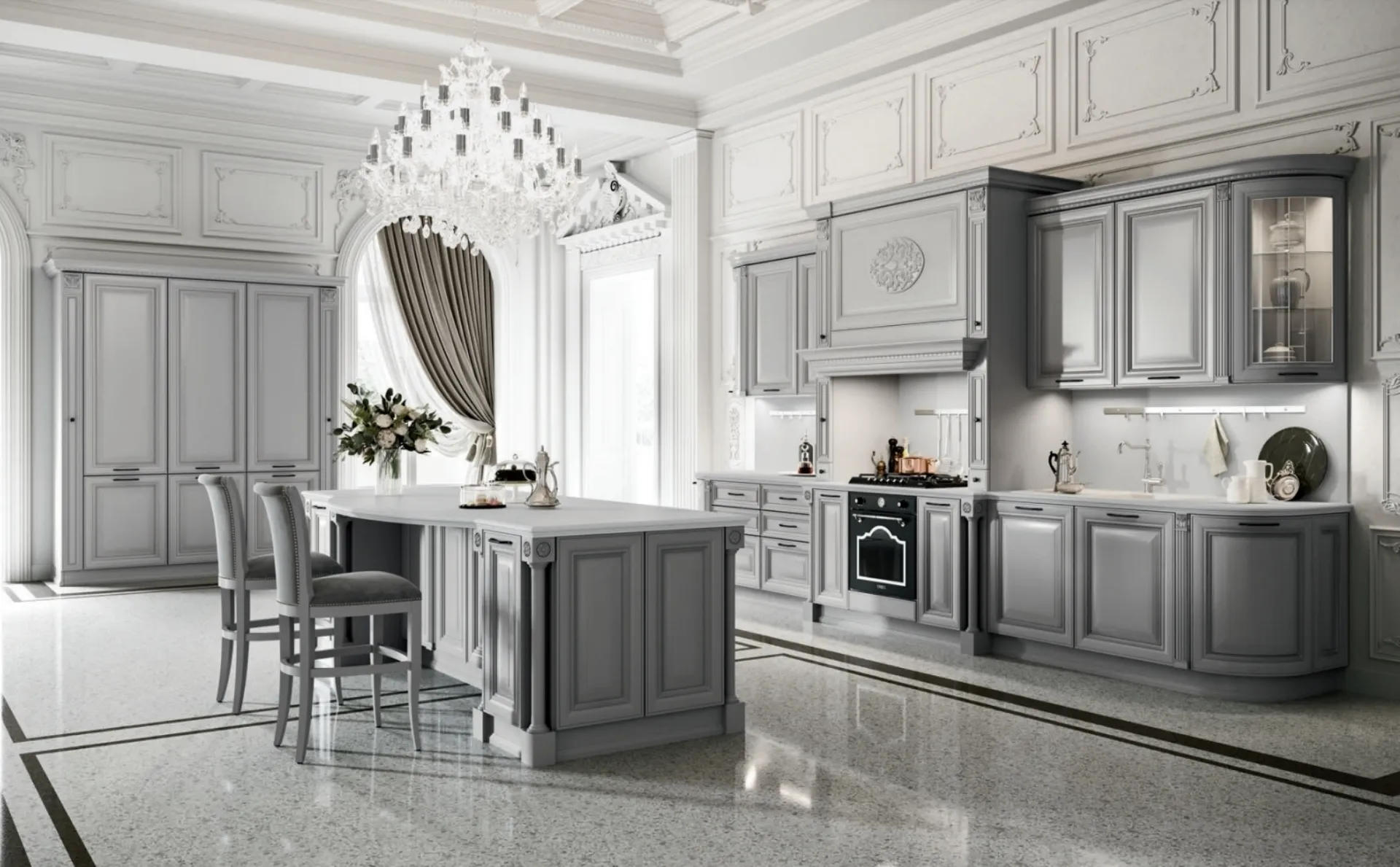 La cucina Ginevra di Ar-Tre incarna un'estetica classica di intramontabile raffinatezza. Il suo concept stilistico trae ispirazione dall'architettura storica, caratterizzato da un telaio a bugna ideale per ambienti dal gusto classico o barocco. Questa collezione si distingue per la qualità delle sue laccature, arricchite da opzioni di finitura anticate in oro e argento. Le ante, con uno spessore di 23mm, sono costruite con un robusto telaio in legno massello e un pannello centrale in MDF, disponibili in svariate colorazioni. I dettagli delle ante a telaio sono ulteriormente impreziositi da bugne e decori rettangolari, che ne esaltano la struttura e il pregio. Per un'analisi dettagliata delle specifiche tecniche, delle finiture disponibili e delle opzioni di configurazione, è consigliabile consultare la documentazione tecnica o richiedere una consulenza specialistica.