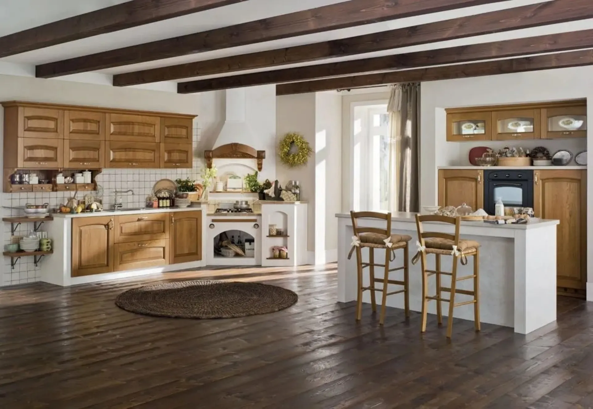 La cucina Barchessa 03 di Ar-Tre si distingue per la sua interpretazione raffinata del design classico, evidenziata dall'anta con telaio ad arco che conferisce un tocco di eleganza distintiva. Progettata per integrarsi armoniosamente in contesti tradizionali, questa soluzione offre un'alta versatilità compositiva. La meticolosa selezione del legno, materiale predominante, assicura solidità strutturale e un'estetica calda e accogliente, riflettendo un'impronta artigianale di pregio. Questa proposta incarna l'eccellenza del design italiano, integrando materiali selezionati per garantire durabilità e prestazioni superiori.